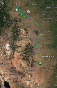 Motus tracked them through 30 stations (represented by green circles). Data were collected in Colorado and again in Montana and North Dakota, but no information was available for Wyoming migration or breeding. We hope to change that!